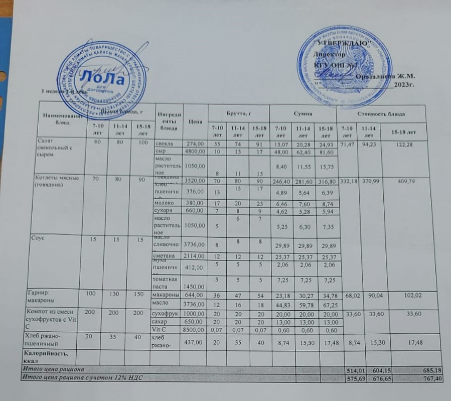 Бюджет қаражаты есебінен орта білім беру ұйымдарында білім алушыларды тегін тамақтандыруды ұйымдастыру үшін төрт апталық ас мәзірі/Четырехнедельное меню блюд для организации бесплатного питания обучающихся в организациях среднего образования за счет бюджетных средств