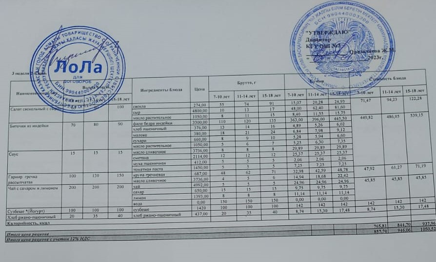 Бюджет қаражаты есебінен орта білім беру ұйымдарында білім алушыларды тегін тамақтандыруды ұйымдастыру үшін төрт апталық ас мәзірі/Четырехнедельное меню блюд для организации бесплатного питания обучающихся в организациях среднего образования за счет бюджетных средств