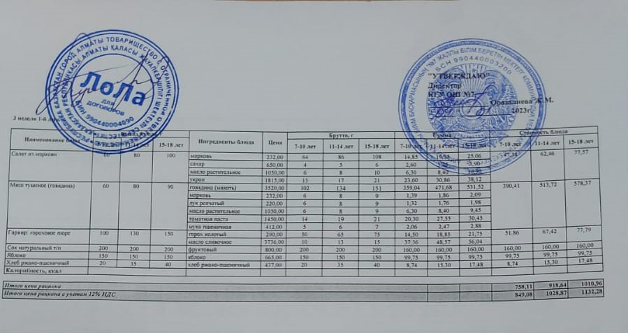 Бюджет қаражаты есебінен орта білім беру ұйымдарында білім алушыларды тегін тамақтандыруды ұйымдастыру үшін төрт апталық ас мәзірі/Четырехнедельное меню блюд для организации бесплатного питания обучающихся в организациях среднего образования за счет бюджетных средств