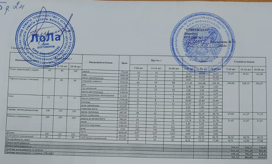 Бюджет қаражаты есебінен орта білім беру ұйымдарында білім алушыларды тегін тамақтандыруды ұйымдастыру үшін төрт апталық ас мәзірі/Четырехнедельное меню блюд для организации бесплатного питания обучающихся в организациях среднего образования за счет бюджетных средств